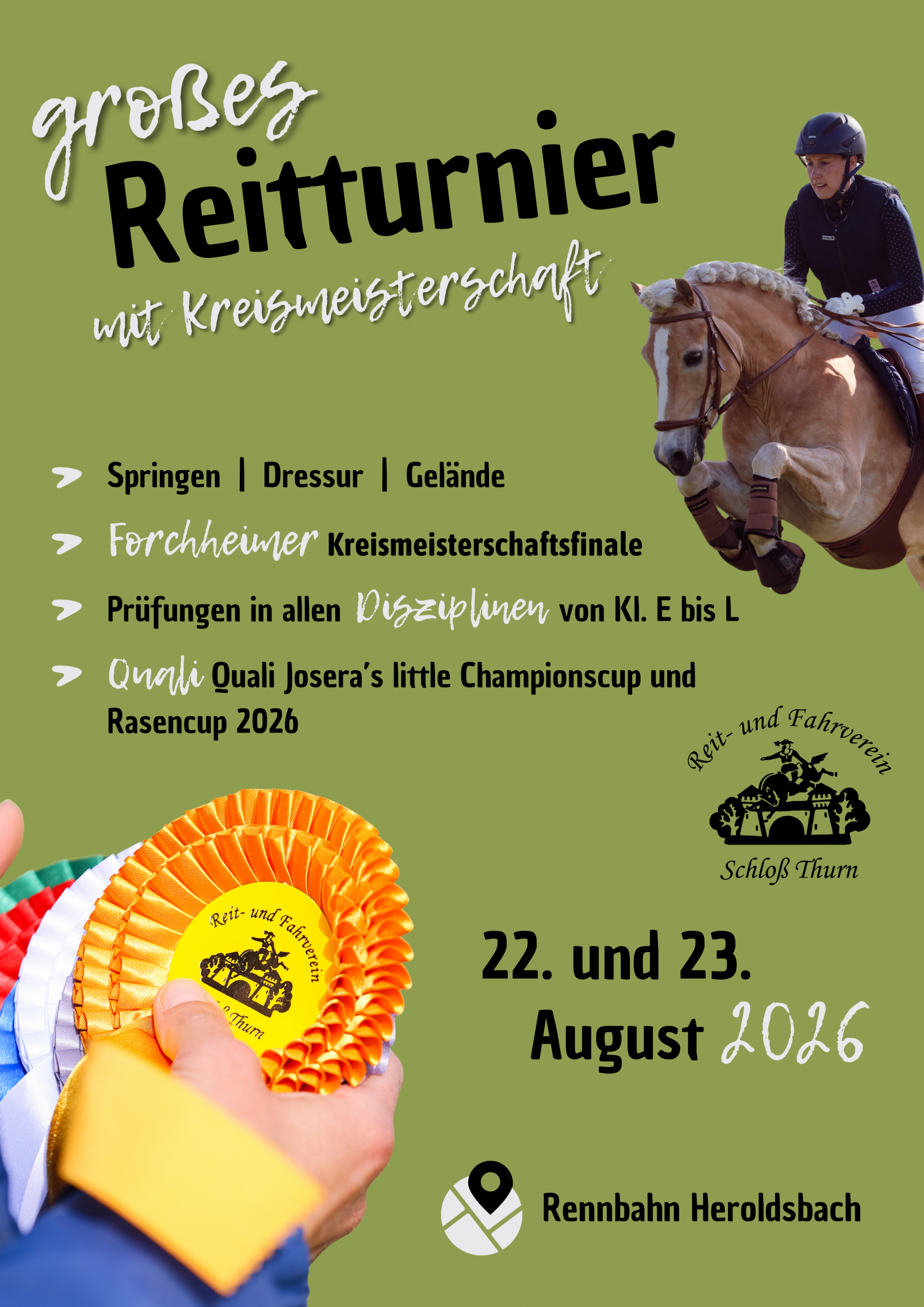 Der Reit- und Fahrverein Schloss Thurn e.V. blickt auf eine lange und bewegte Geschichte im Reitsport zurück. Seit jeher stehen Gemeinschaft, Engagement und die Freude am Pferdesport im Mittelpunkt des Vereinslebens.